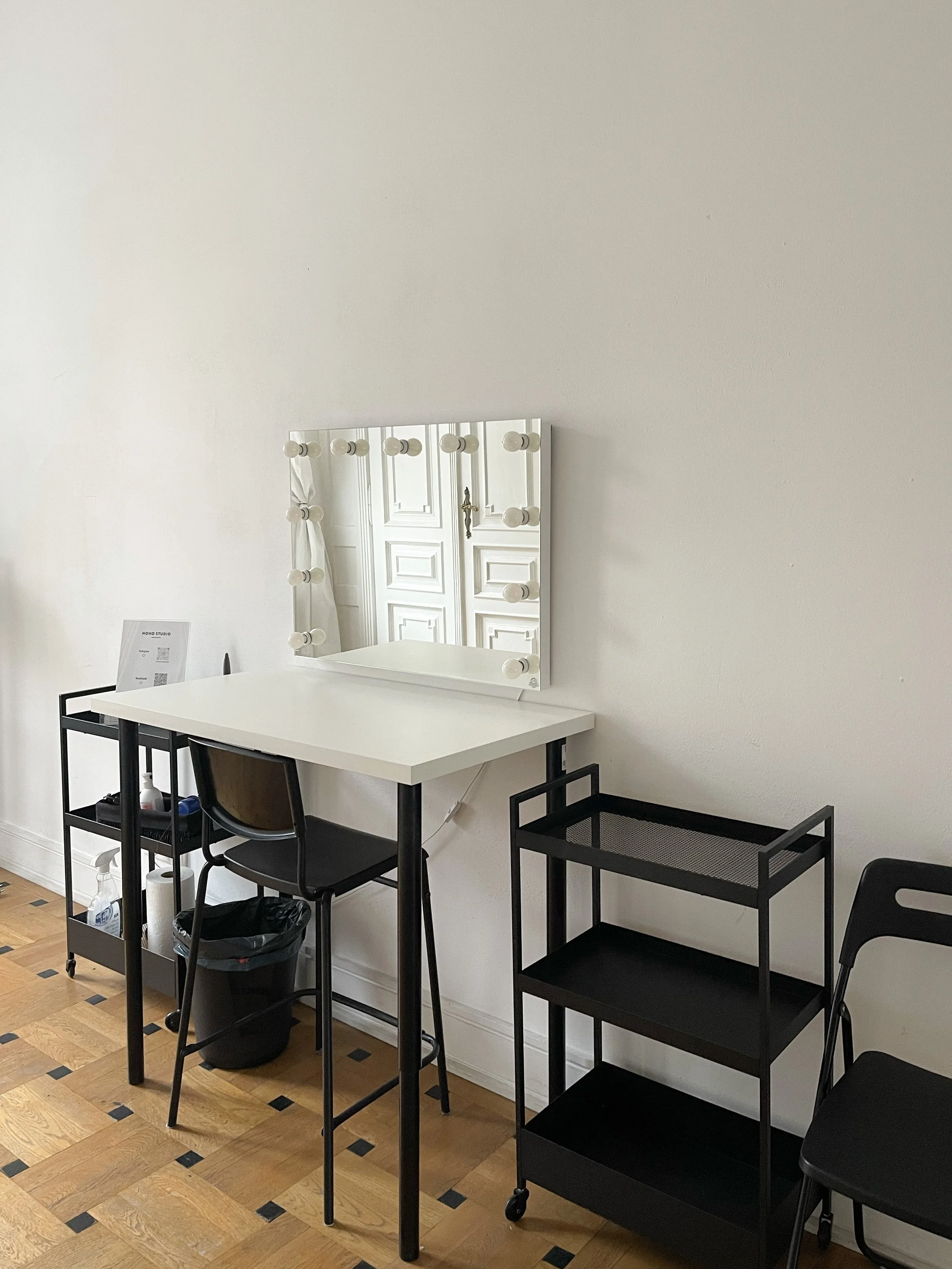 garderoba ze stanowiskiem do makijażu i lustrem led